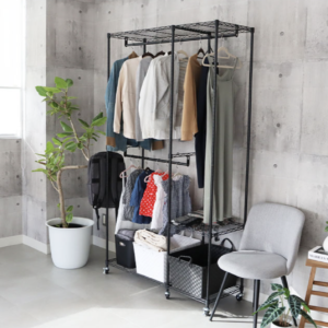 収納物に合わせて自由に高さ調節できる大容量ハンガーラック。